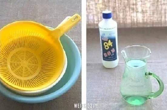 ▌將84消毒液和清水,以1:200的比例兌在一起,將需要“換膚”的塑料制品放入,浸泡兩個小時。再用清水反復沖洗干凈就可以了,效果好又不會產生任何腐蝕作用,浸泡過塑料框的水還可以倒入馬桶中,還能起到清潔馬桶的作用。