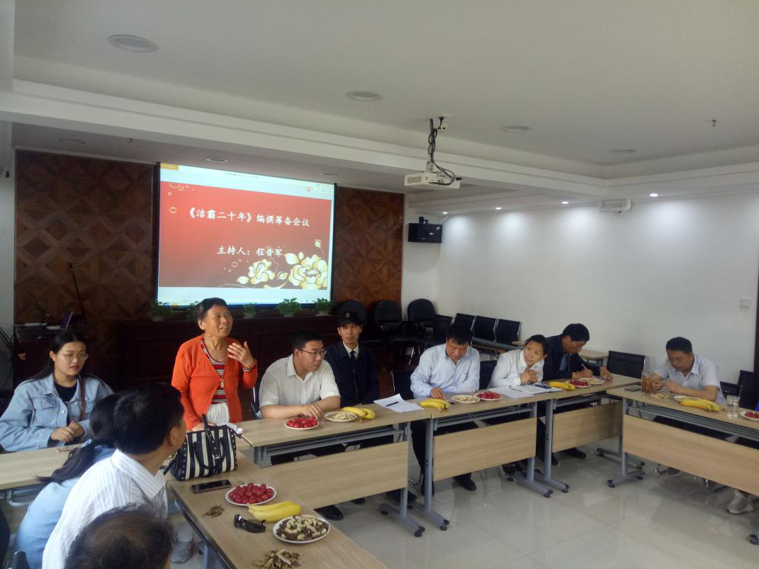 2019年5月17日,公司在會(huì)議室召開《潔霸二十年》編撰籌備會(huì)議,出席本次會(huì)議的有公司的主要領(lǐng)導(dǎo),部門經(jīng)理、項(xiàng)目經(jīng)理、主管、科員,有部分曾經(jīng)在潔霸工作過的同志,還有個(gè)別邀請(qǐng)到的作家等,公司程總主持了本次會(huì)議。
