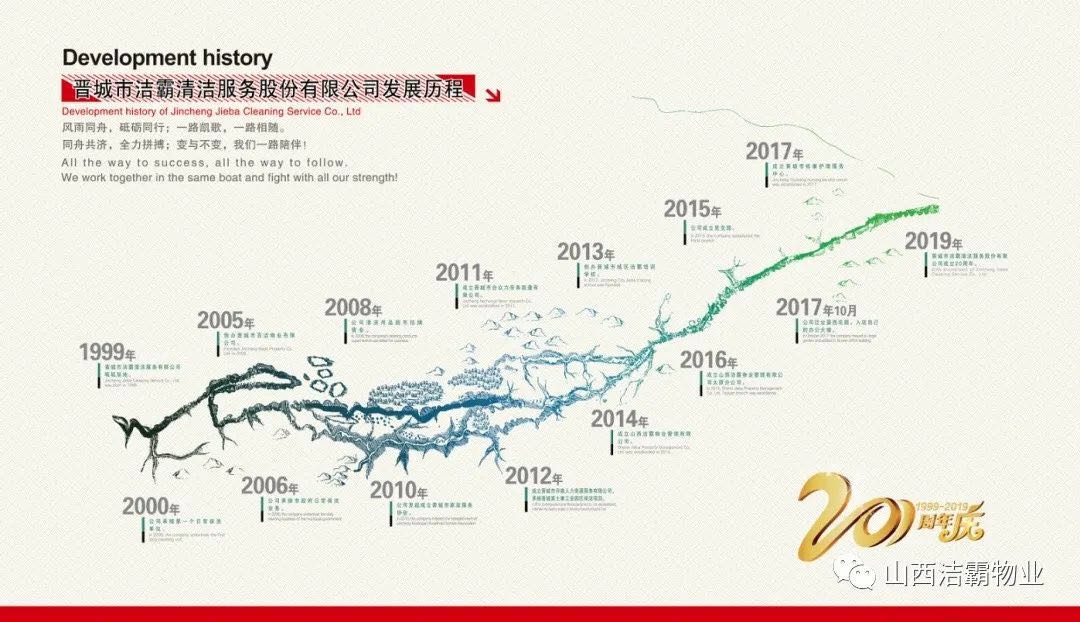 20年追夢,20年奮斗。晉城市潔霸清潔服務股份有限公司成立以來,20年經(jīng)濟大幅躍升,企業(yè)面貌脫胎換骨,社會貢獻成績斐然,職工生活顯著改善。