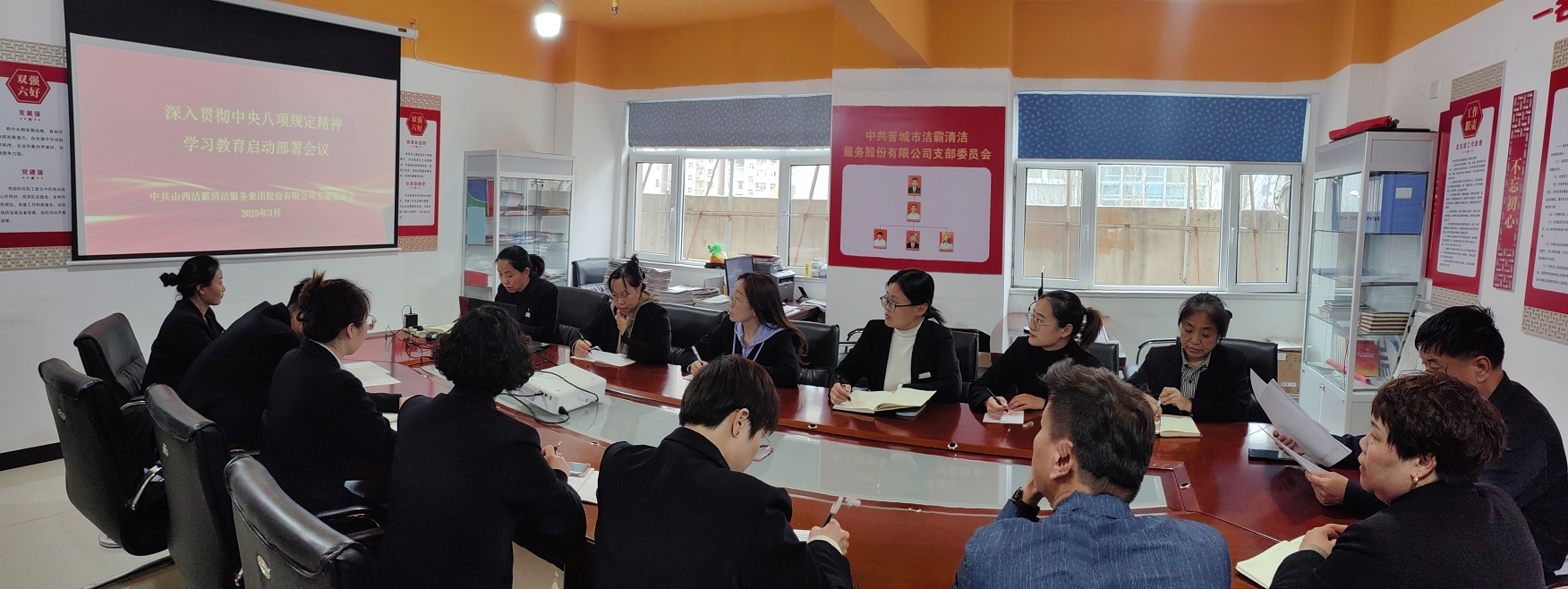 近日,山西潔霸清潔服務(wù)集團股份有限公司黨支部召開專題會議,對公司開展深入貫徹中央八項規(guī)定精神學習教育進行部署。支部書記程晉軍主持會議并講話。